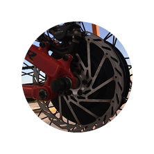 Für sicheres fahren befinden sich Power-off Magnete an den Bremshebeln, sodass beim Bremsen sofort die Stromzufuhr zum Motor unterbrochen wird.